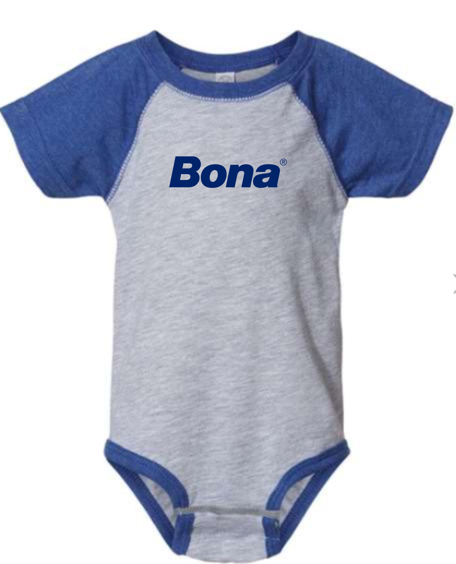 Made from 4.5 oz. combed ringspun cotton. Flatlock stitched with ribbed collar and raglan sleeves. Features an innovative 3 snap closure for easy in and out. Also features an easy tear away tag for comfort.